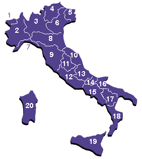 A República Italiana é dividida em Regiões, que por sua vez são divididas em Províncias e estas em Municípios (Comuni). As Regiões são entidades autônomas, portanto com independência política, jurídica, legislativa e administrativa, como estabelecido pela Constituição, e nunca em contrariedade com as leis do Estado. As vinte Regiões italianas são discriminadas em Regiões a Estatuto Ordinário (instituídas no ano de 1972) e Regiões a Estatuto Especial (instituídas anteriormente) e gozam da mais ampla autonomia. A Região é governada pelo Conselho Regional (de 30 até 60 membros eleitos pelos cidadãos), que por sua vez elege a Comissão Regional (Giunta Regionale), com funções executivas e administrativas, e os dois elegem o Presidente da "Giunta Regionale". Três delegados de cada Região, eleitos pelo Conselho Regional, participam, junto às duas Câmaras do Parlamento (Câmara dos Deputados e Senado da República) à eleição do Presidente da República.